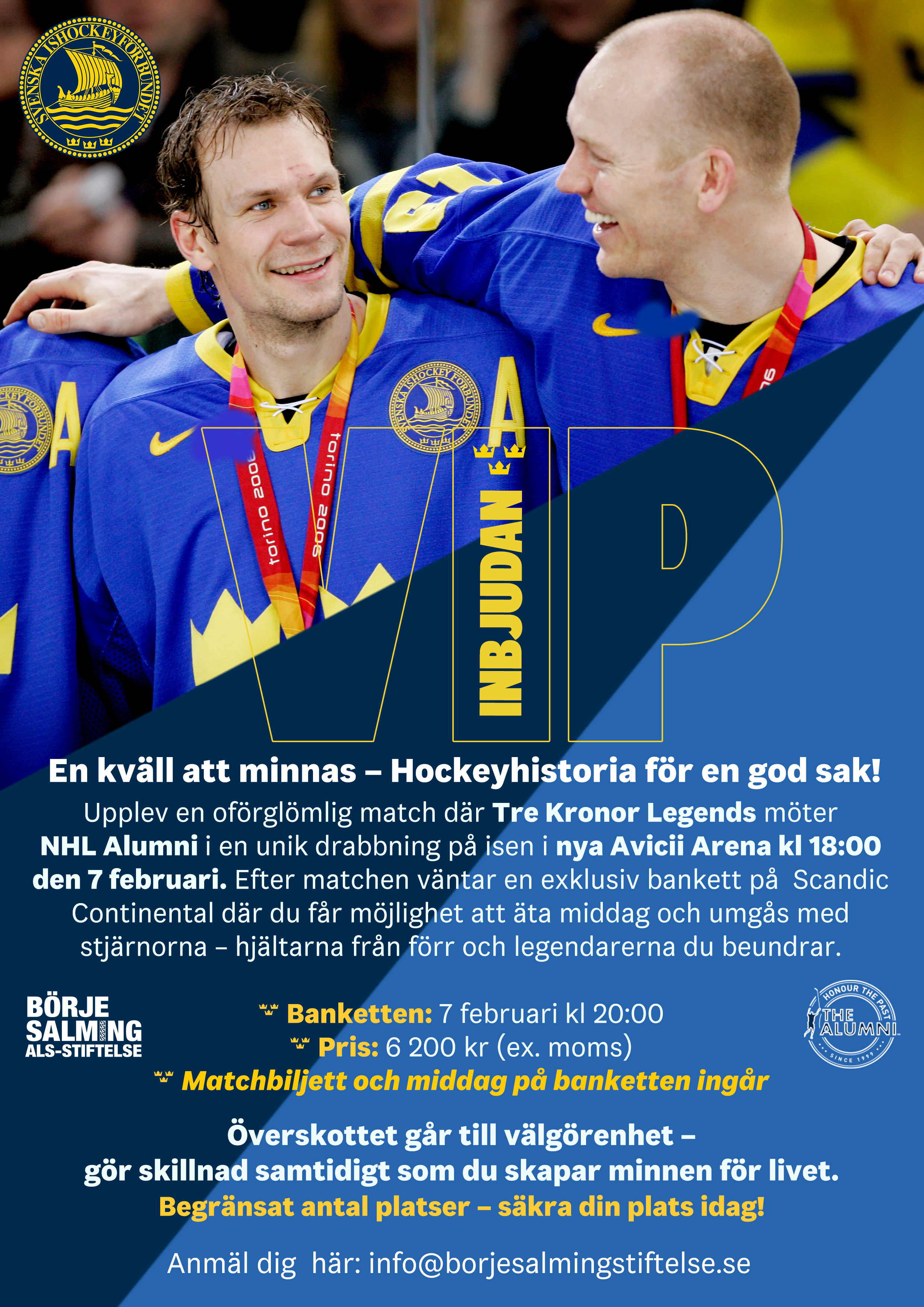 Upplev en oförglömlig match där Tre Kronor Legends möter NHL Alumni i en unik drabbning på isen i nya Avicii Arena kl 18:00 den 7 februari. Köp dina biljetter här